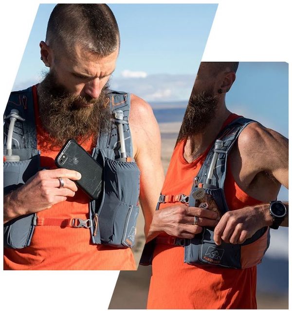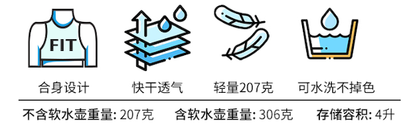 2個600毫升的水壺設(shè)計適用于大部分比賽,前側(cè)手機倉存取方便,貼身穩(wěn)定。