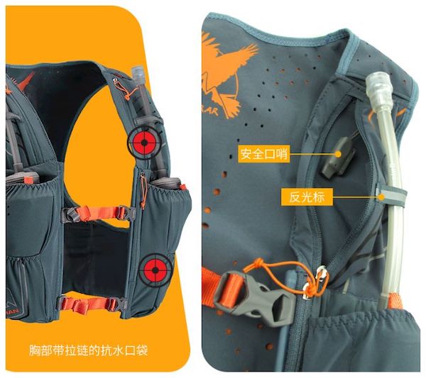容量:口袋很多且封閉性好,背包的后背可以拉鏈裝東西,左胸下側(cè)可以拉鏈裝東西,我裝了手機和雜物。