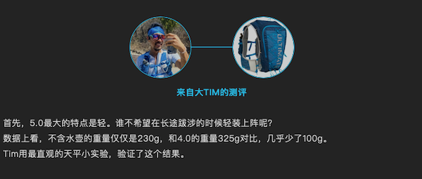 今天介紹的形式比較特別,我們請(qǐng)來(lái)了完賽2019年UTMB中PTL組別的大Tim,為大家做了一段Vlog視頻測(cè)評(píng)。視頻時(shí)長(zhǎng)7分33秒,帶來(lái)了非常詳盡的5.0評(píng)測(cè),也為大家介紹了長(zhǎng)距離的打包技巧,很有趣。如果覺(jué)得較長(zhǎng),則可以繼續(xù)往下看我們的濃縮精華。