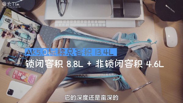 AK5.0和4.0一樣,總?cè)莘e13.4升,深色布料部分有著防水的功能,內(nèi)層若干個(gè)小兜,滿(mǎn)足打包控對(duì)分類(lèi)打包放置的需求,長(zhǎng)距離奔跑也可以極度舒適。