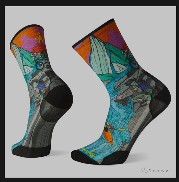 同樣是一款超輕量的運動功能襪,但是來頭可不小。這是藝術家Chris Benchetler 與Smartwool 的聯名款,應用了Smartwool獨有的360度印染技術。這款印花襪將山地運動、漂流、騎行等被戶外人熱愛的元素集合在一雙襪子上,非常漂亮的設計與色彩。小編第一眼看到它的時候就被征服了。