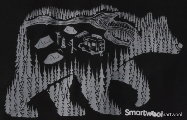 這是Smartwool與瑞典藝術家Jonas Claesson聯名款(去年的摩托熊圖案也是他的作品)。T恤圖案為Jonas在戶外探險過程中的場景呈現,大熊、房車、露營、篝火、山脈、森林,應有盡有。同時完美結合了美利奴羊毛的吸濕排汗、溫控管理、抗菌防臭等優(yōu)勢與滌綸的耐久、快干特性。放大圖案給你們看~