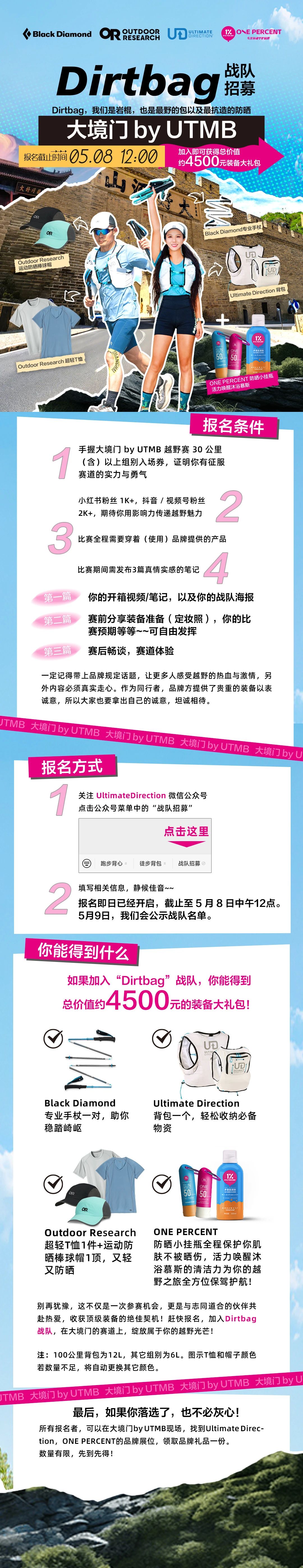 Dirtbag 戰(zhàn)隊招募 | 4500元裝備等你來拿!大境門越野賽 by UTMB