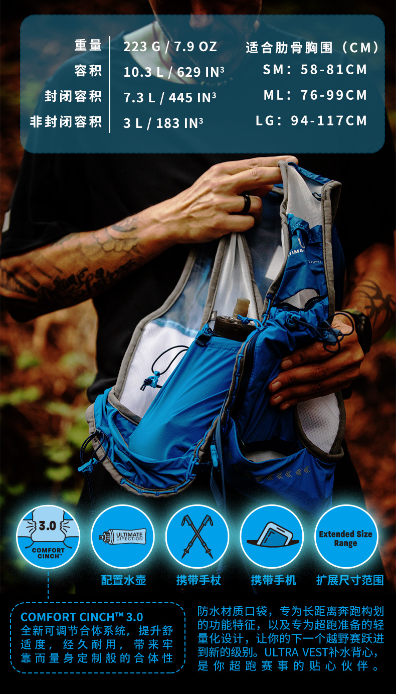 UltimateDirection UD超跑6.0新戶外越野跑背包水袋運(yùn)動背包10.3L 80458322